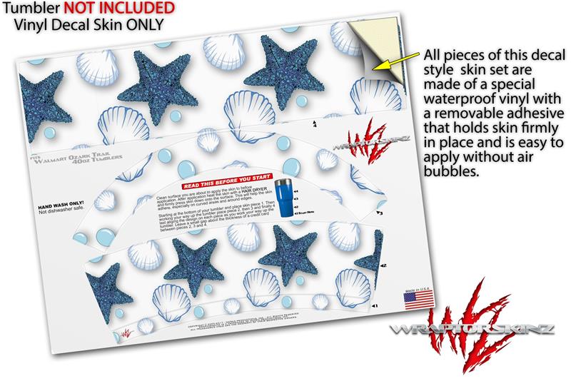Skin Decal Wrap for Walmart Ozark Trail Tumblers 40oz Starfish and Sea Shells White (TUMBLER NOT INCLUDED) by WraptorSkinz