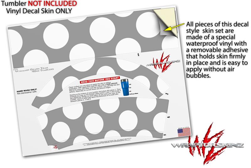 Skin Decal Wrap for Walmart Ozark Trail Tumblers 40oz Kearas Polka Dots Whtie On Gray (TUMBLER NOT INCLUDED) by WraptorSkinz