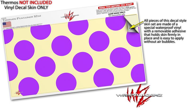 Skin Decal Wrap for Thermos Funtainer 12oz Bottle Kearas Polka Dots Purple On Cream (BOTTLE NOT INCLUDED) by WraptorSkinz