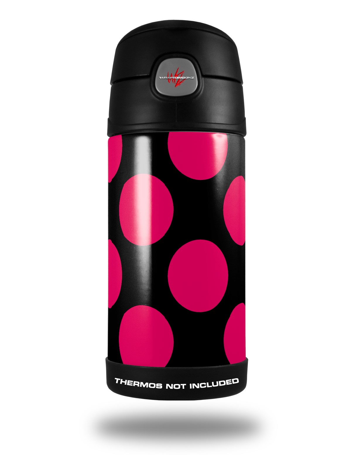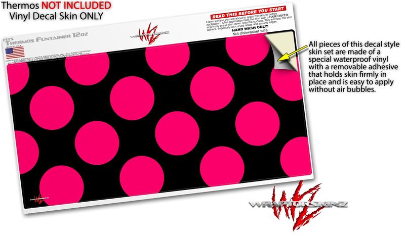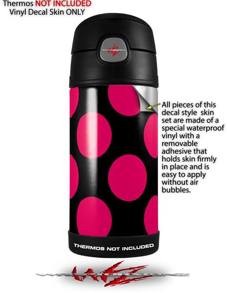 Skin Decal Wrap for Thermos Funtainer 12oz Bottle Kearas Polka Dots Pink On Black (BOTTLE NOT INCLUDED) by WraptorSkinz