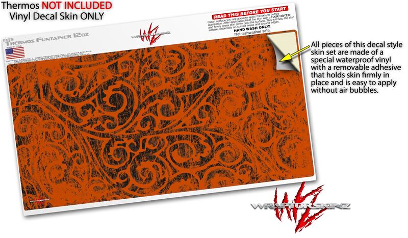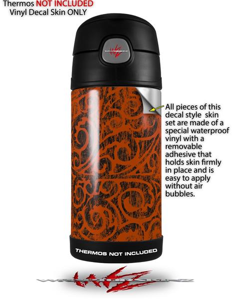 Skin Decal Wrap for Thermos Funtainer 12oz Bottle Folder Doodles Burnt Orange (BOTTLE NOT INCLUDED) by WraptorSkinz