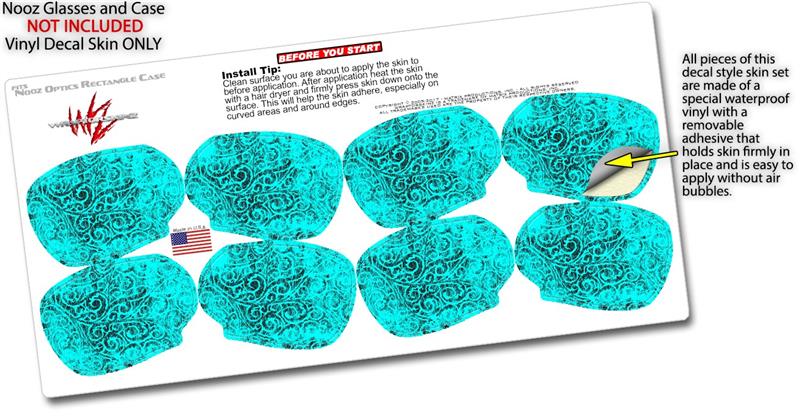 Decal Style Vinyl Skin Wrap 2 Pack for Nooz Glasses Rectangle Case Folder Doodles Neon Teal (NOOZ NOT INCLUDED) by WraptorSkinz