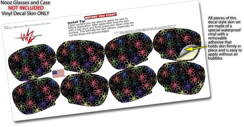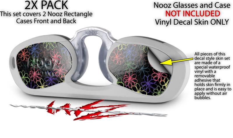 Decal Style Vinyl Skin Wrap 2 Pack for Nooz Glasses Rectangle Case Kearas Flowers on Black (NOOZ NOT INCLUDED) by WraptorSkinz