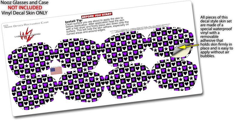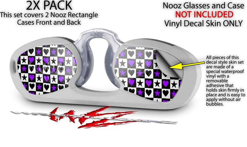 Decal Style Vinyl Skin Wrap 2 Pack for Nooz Glasses Rectangle Case Purple Hearts And Stars (NOOZ NOT INCLUDED) by WraptorSkinz