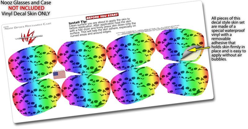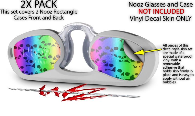 Decal Style Vinyl Skin Wrap 2 Pack for Nooz Glasses Rectangle Case Rainbow Skull Collection (NOOZ NOT INCLUDED) by WraptorSkinz