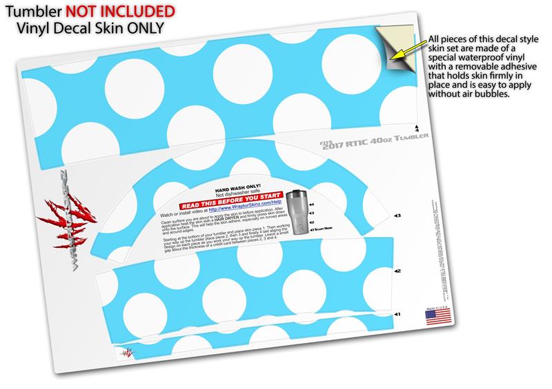 Skin Wrap Decal for 2017 RTIC Tumblers 40oz Kearas Polka Dots White And Blue (TUMBLER NOT INCLUDED)