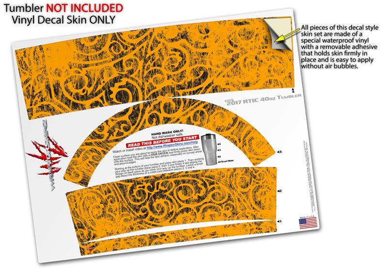 Skin Wrap Decal for 2017 RTIC Tumblers 40oz Folder Doodles Orange (TUMBLER NOT INCLUDED)