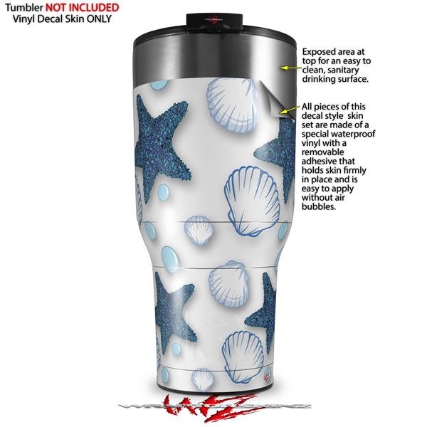 Skin Wrap Decal for 2017 RTIC Tumblers 40oz Starfish and Sea Shells White (TUMBLER NOT INCLUDED)