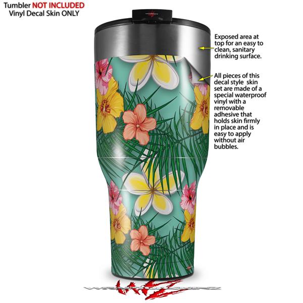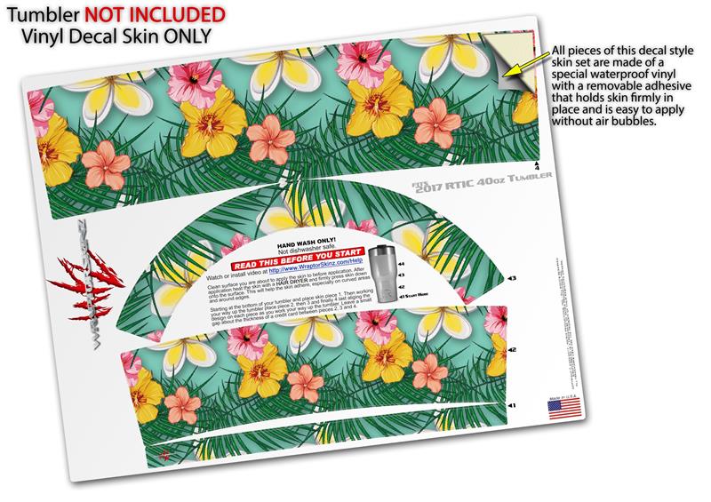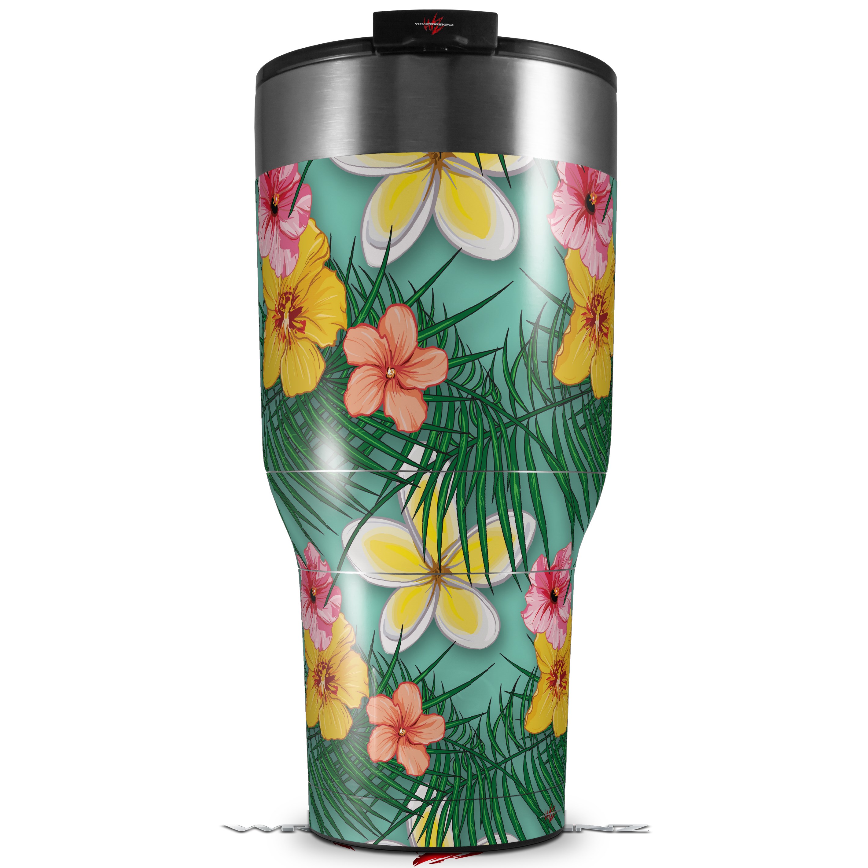Skin Wrap Decal for 2017 RTIC Tumblers 40oz Beach Flowers 02 Seafoam Green (TUMBLER NOT INCLUDED)
