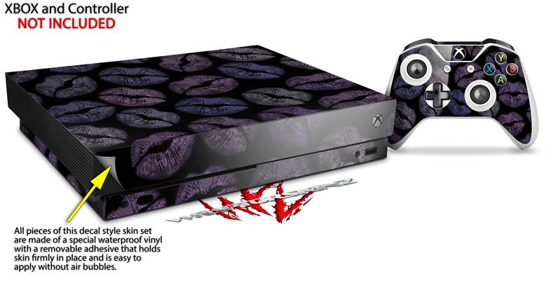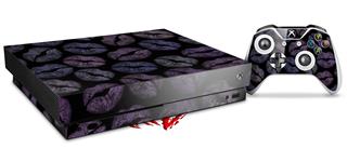 Skin Wrap for XBOX One X Console and Controller Purple And Black Lips
