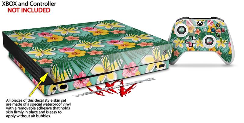 Skin Wrap for XBOX One X Console and Controller Beach Flowers 02 Seafoam Green