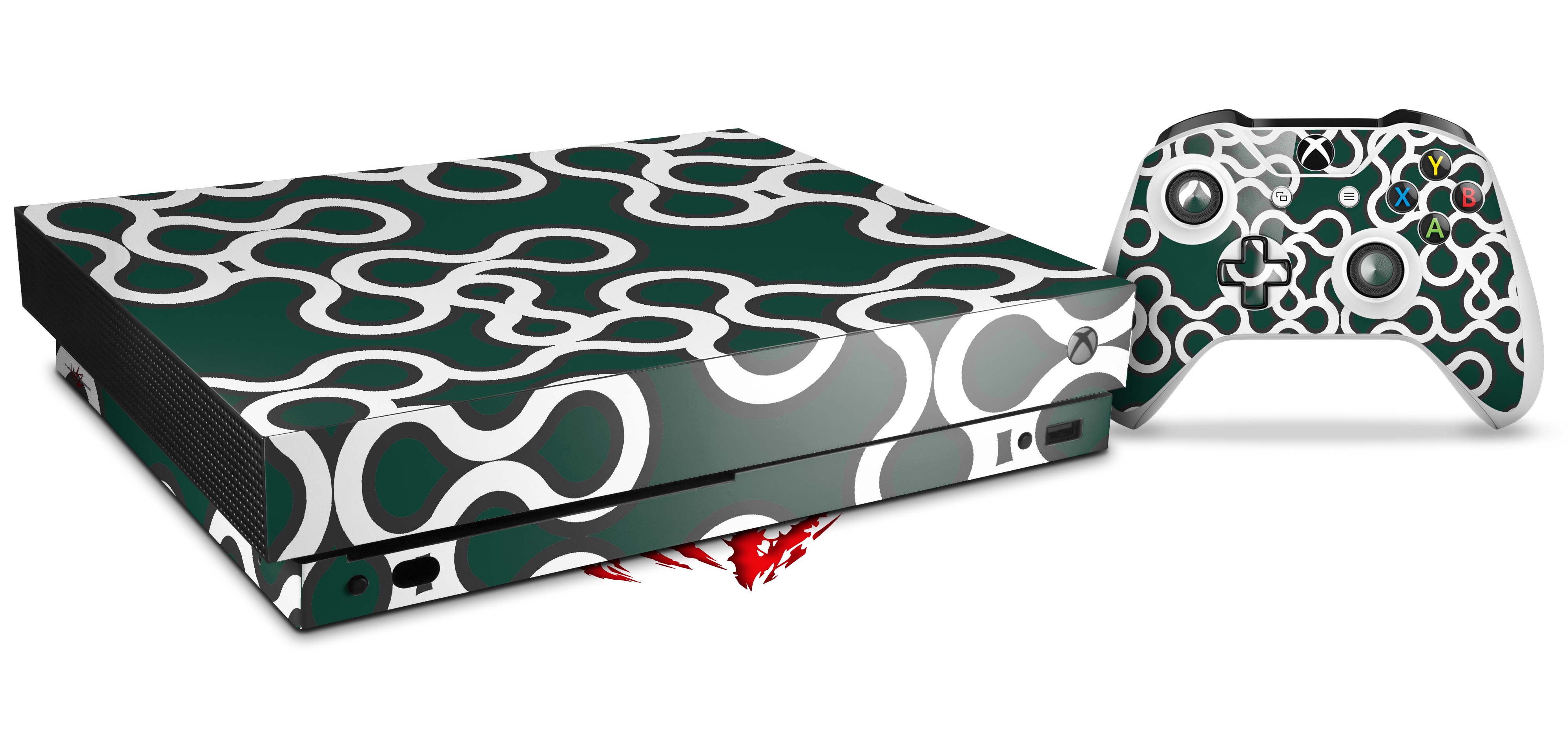 Skin Wrap for XBOX One X Console and Controller Locknodes 03 Hunter Green