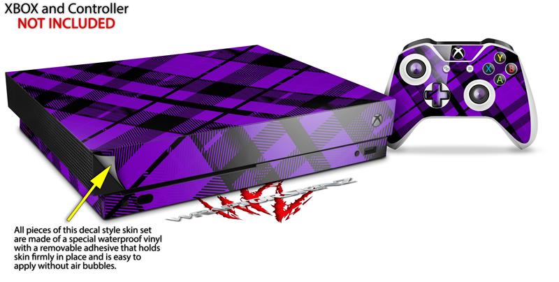 Skin Wrap for XBOX One X Console and Controller Purple Plaid