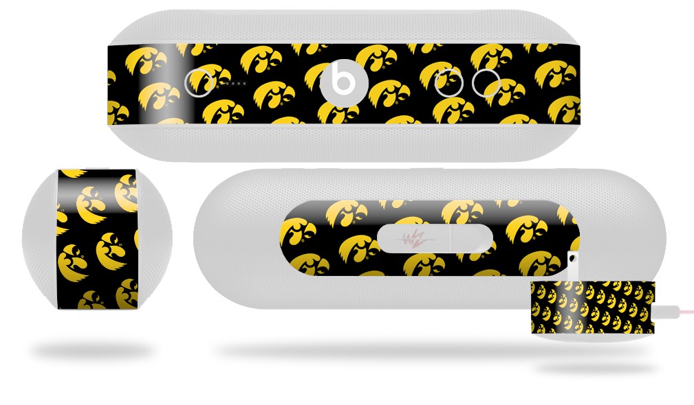 Decal Style Wrap Skin fits Beats Pill Plus Iowa Hawkeyes Tigerhawk Tiled 06 Gold on Black (BEATS PILL NOT INCLUDED)