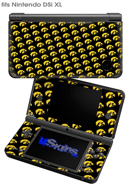 Iowa Hawkeyes Tigerhawk Tiled 06 Gold on Black - Decal Style Skin fits Nintendo DSi XL (DSi SOLD SEPARATELY)