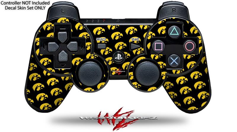 Sony PS3 Controller Decal Style Skin - Iowa Hawkeyes Tigerhawk Tiled 06 Gold on Black (CONTROLLER NOT INCLUDED)