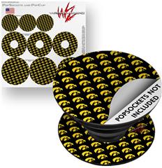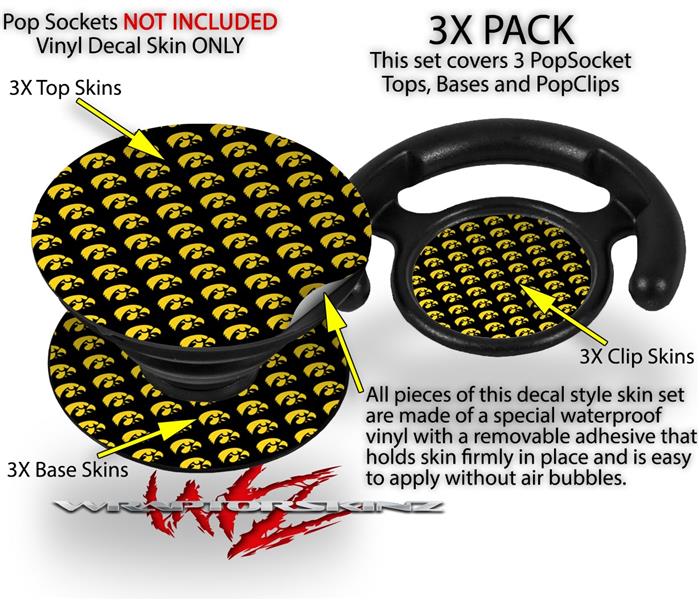 Decal Style Vinyl Skin Wrap 3 Pack for PopSockets Iowa Hawkeyes Tigerhawk Tiled 06 Gold on Black (POPSOCKET NOT INCLUDED)