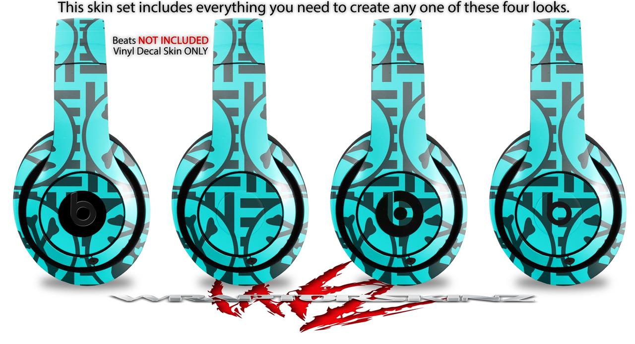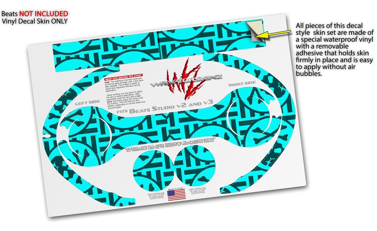 WraptorSkinz Skin Decal Wrap compatible with Beats Studio 2 and 3 Wired and Wireless Headphones Skull Patch Pattern Blue Skin Only (HEADPHONES NOT INCLUDED)