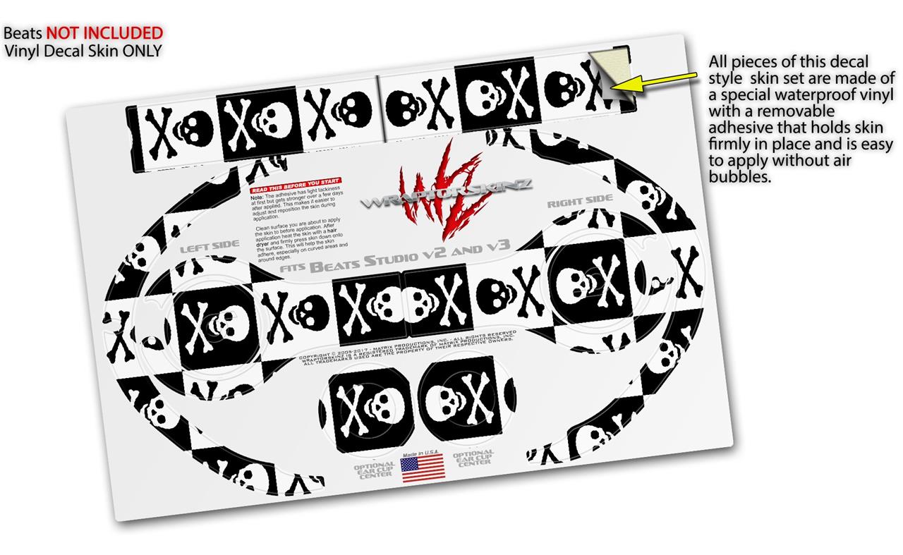WraptorSkinz Skin Decal Wrap compatible with Beats Studio 2 and 3 Wired and Wireless Headphones Skull Checkerboard Skin Only (HEADPHONES NOT INCLUDED)