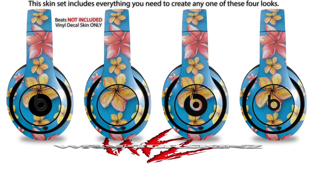 WraptorSkinz Skin Decal Wrap compatible with Beats Studio 2 and 3 Wired and Wireless Headphones Beach Flowers Blue Medium Skin Only (HEADPHONES NOT INCLUDED)