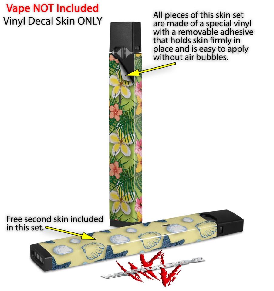 Skin Decal Wrap 2 Pack for Juul Vapes Beach Flowers 02 Sage Green JUUL NOT INCLUDED