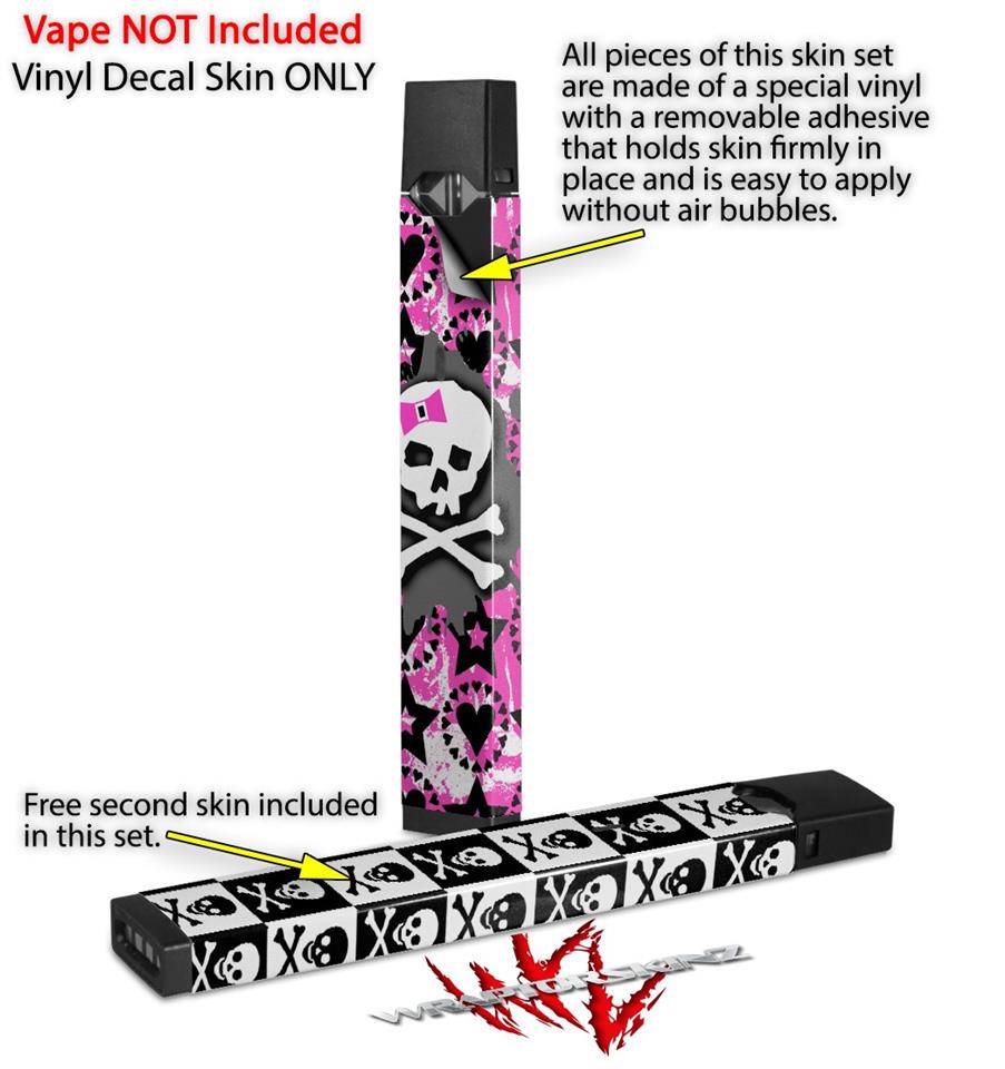 Skin Decal Wrap 2 Pack for Juul Vapes Bow Skull Pink JUUL NOT INCLUDED