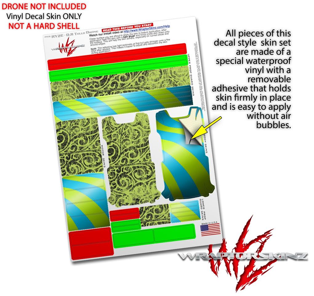 WraptorSkinz® skin wraps are printed using superb photo quality designs and vibrant colors printed with special fade resistant inks that last even in direct sun for years. WraptorSkinz are a composite of two layers of commercial grade materials. The bottom layer is a soft, flexible vinyl with a special removable adhesive that is easily positioned, applied without air bubbles. Next we print the bottom layer with UV protected, fade resistant inks that deliver superb photo quality designs in vibrant colors. Finally we bond a professional grade laminate over the entire skin adding a glossy protective finish. This product is not affiliated with or endorsed by the Ryze or DJI brand.