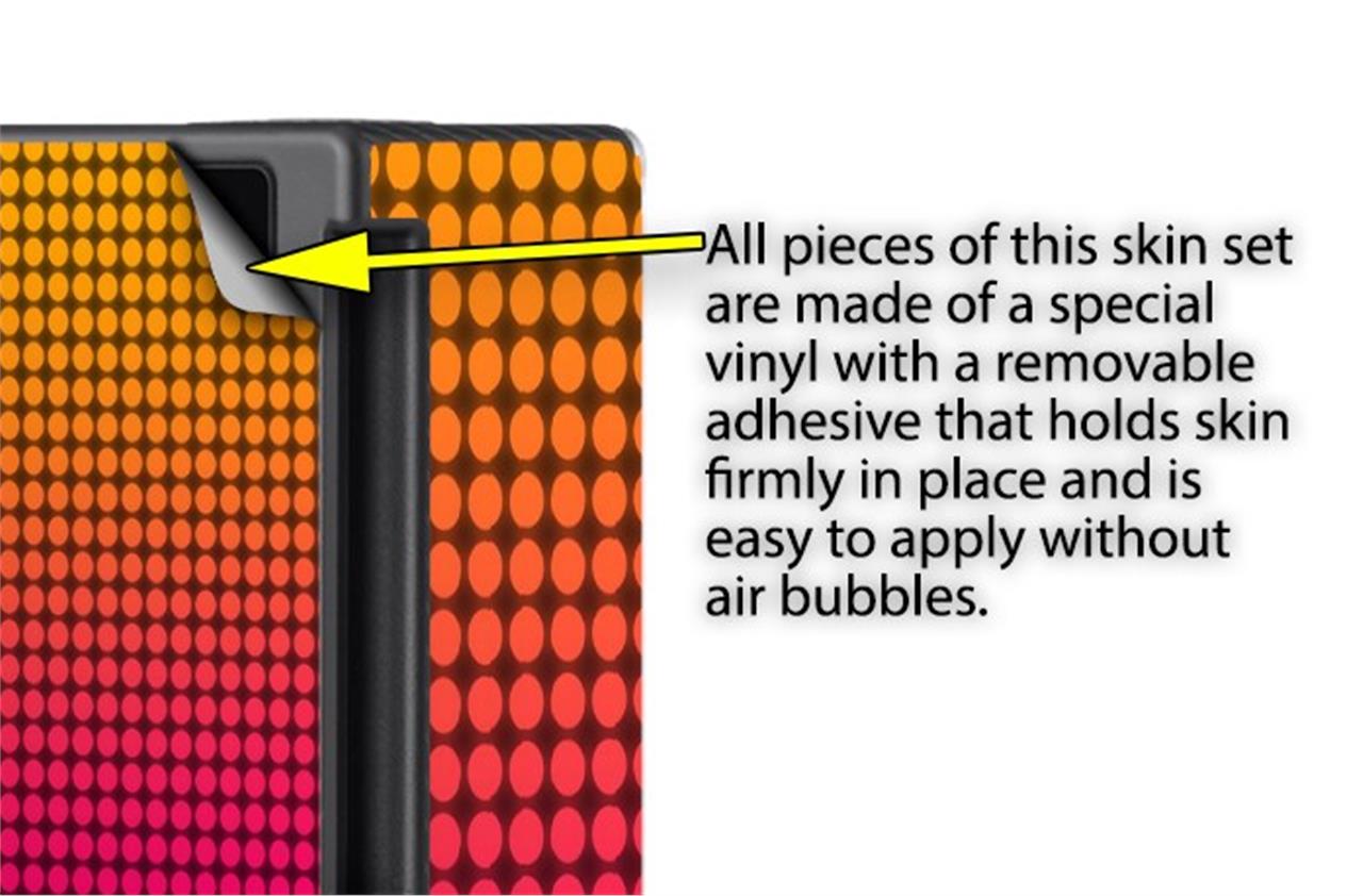 WraptorSkinz® skins are superb photo quality designs and vibrant colors printed with special Eco-Friendly, fade resistant inks. Our skins are self-adhering flexible vinyl skins that helps prevent scratches. Made of composite, multi-layered commercial grade materials. The bottom layer is made with a special removable adhesive that is easily positioned and applied without air bubbles. We print your design on the bottom layer then bond a professional grade laminate over the entire skin adding a glossy protective finish.