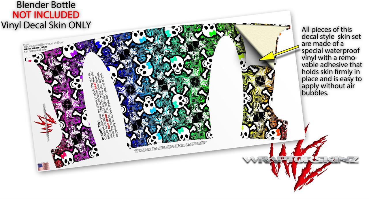 Decal Style Skin Wrap works with Blender Bottle 20oz Splatter Girly Skull Rainbow (BOTTLE NOT INCLUDED)