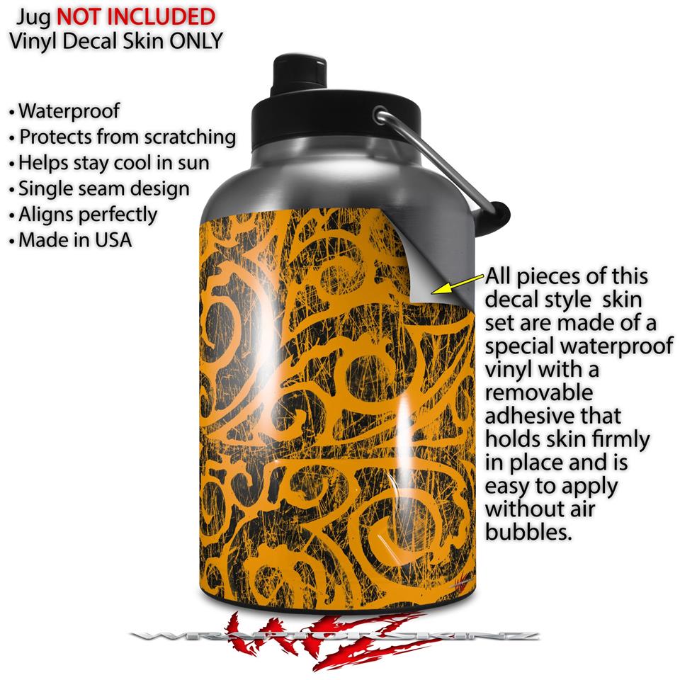 Skin Decal Wrap for 2017 RTIC One Gallon Jug Folder Doodles Orange (Jug NOT INCLUDED) by WraptorSkinz