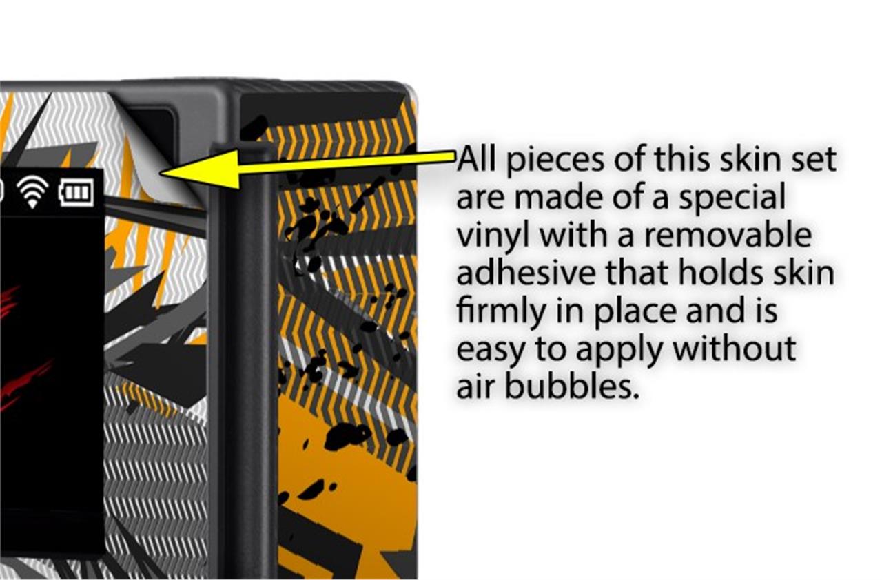 WraptorSkinz® skins are superb photo quality designs and vibrant colors printed with special Eco-Friendly, fade resistant inks. Our skins are self-adhering flexible vinyl skins that helps prevent scratches. Made of composite, multi-layered commercial grade materials. The bottom layer is made with a special removable adhesive that is easily positioned and applied without air bubbles. We print your design on the bottom layer then bond a professional grade laminate over the entire skin adding a glossy protective finish.