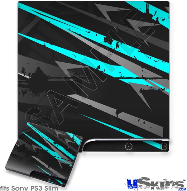 Decal Skin compatible with Sony PS3 Slim Baja 0014 Neon Teal