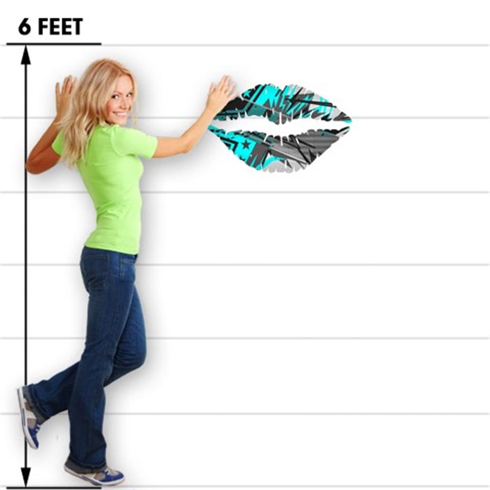 Baja 0032 Neon Teal - Kissing Lips Fabric Wall Skin Decal measures 24x15 inches