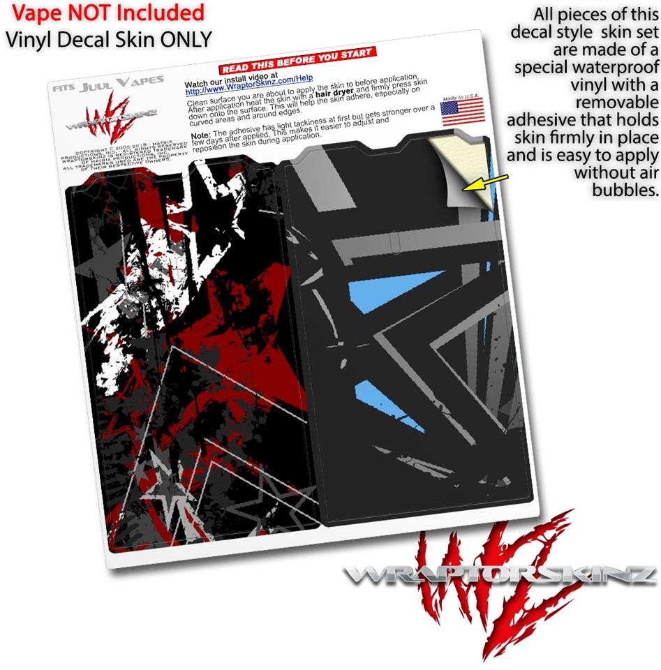WraptorSkinz® skin wraps are printed using superb photo quality designs and vibrant colors printed with special fade resistant inks that last even in direct sun for years. WraptorSkinz are a composite of two layers of commercial grade materials. The bottom layer is a soft, flexible vinyl with a special removable adhesive that is easily positioned, applied without air bubbles. Next we print the bottom layer with UV protected, fade resistant inks that deliver superb photo quality designs in vibrant colors. Finally we bond a professional grade laminate over the entire skin adding a glossy protective finish. This product is not affiliated with or endorsed by the Juul brand.
