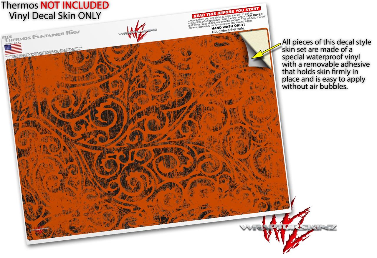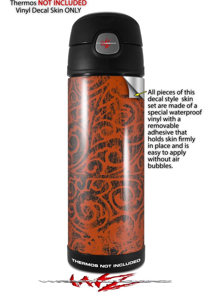 Skin Decal Wrap for Thermos Funtainer 16oz Bottle Folder Doodles Burnt Orange (BOTTLE NOT INCLUDED) by WraptorSkinz