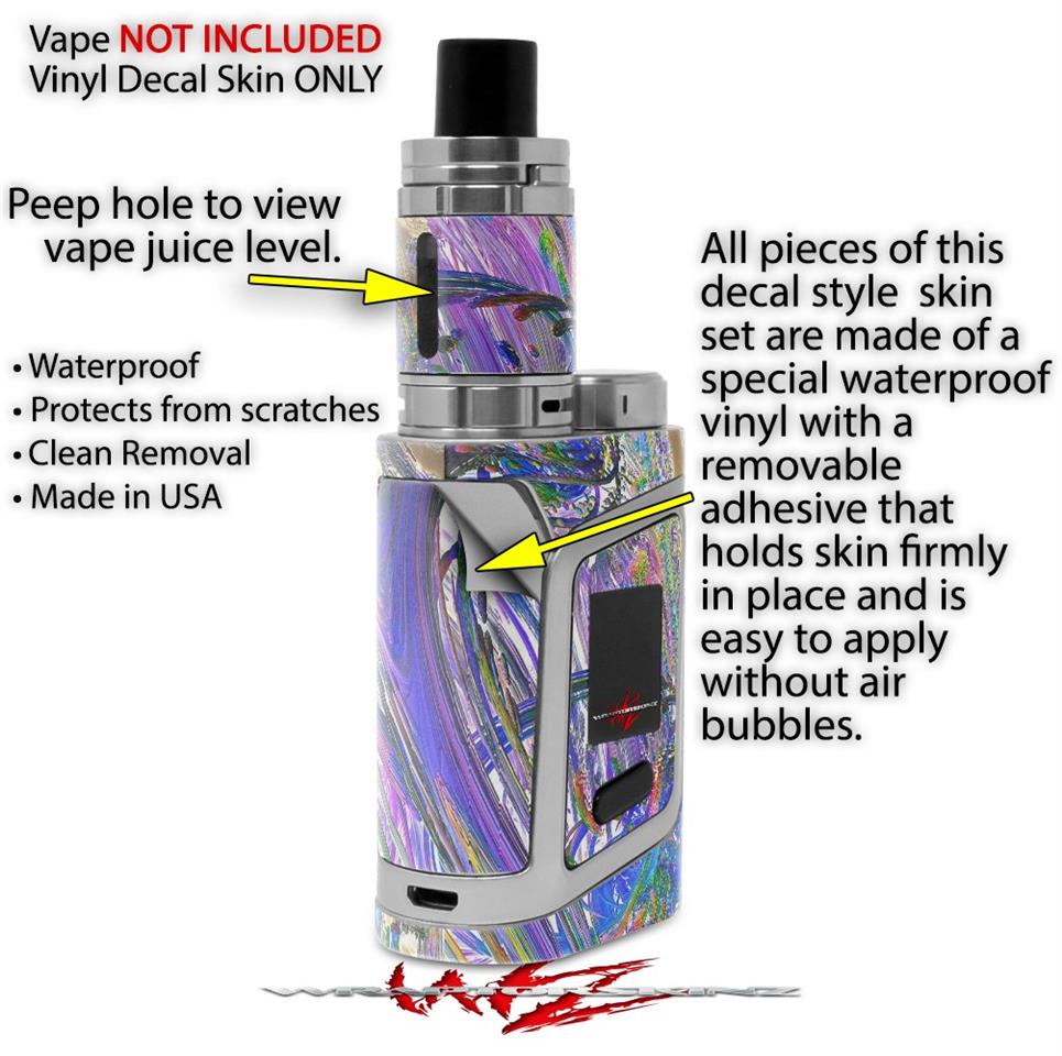 WraptorSkinz® skin wraps are printed using superb photo quality designs and vibrant colors printed with special fade resistant inks that last even in direct sun for years. WraptorSkinz are a composite of two layers of commercial grade materials. The bottom layer is a soft, flexible vinyl with a special removable adhesive that is easily positioned, applied without air bubbles. Next we print the bottom layer with UV protected, fade resistant inks that deliver superb photo quality designs in vibrant colors. Finally we bond a professional grade laminate over the entire skin adding a glossy protective finish. This product is not affiliated with or endorsed by the Smok brand.