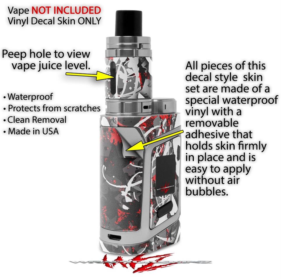 WraptorSkinz® skin wraps are printed using superb photo quality designs and vibrant colors printed with special fade resistant inks that last even in direct sun for years. WraptorSkinz are a composite of two layers of commercial grade materials. The bottom layer is a soft, flexible vinyl with a special removable adhesive that is easily positioned, applied without air bubbles. Next we print the bottom layer with UV protected, fade resistant inks that deliver superb photo quality designs in vibrant colors. Finally we bond a professional grade laminate over the entire skin adding a glossy protective finish. This product is not affiliated with or endorsed by the Smok brand.