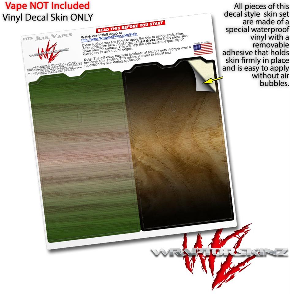 WraptorSkinz® skin wraps are printed using superb photo quality designs and vibrant colors printed with special fade resistant inks that last even in direct sun for years. WraptorSkinz are a composite of two layers of commercial grade materials. The bottom layer is a soft, flexible vinyl with a special removable adhesive that is easily positioned, applied without air bubbles. Next we print the bottom layer with UV protected, fade resistant inks that deliver superb photo quality designs in vibrant colors. Finally we bond a professional grade laminate over the entire skin adding a glossy protective finish. This product is not affiliated with or endorsed by the Juul brand.