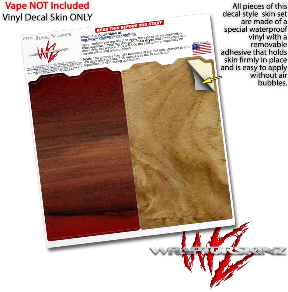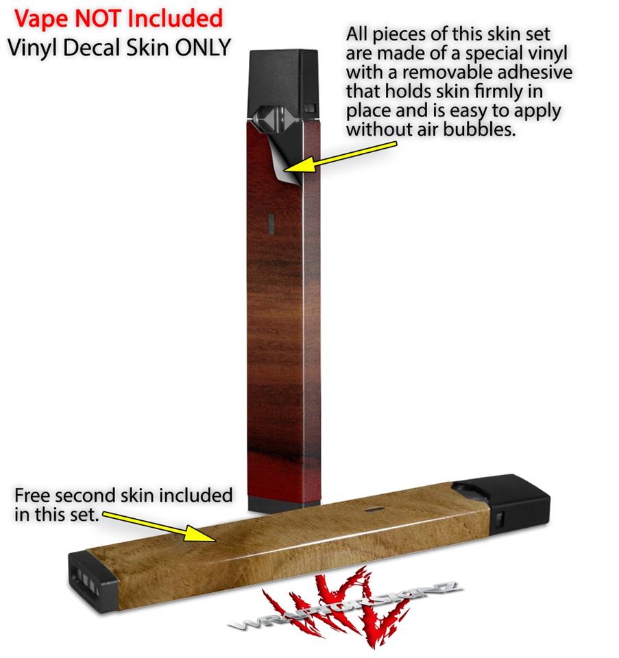 Skin Decal Wrap 2 Pack for Juul Vapes Exotic Wood Rosewood Burst Fire Red JUUL NOT INCLUDED