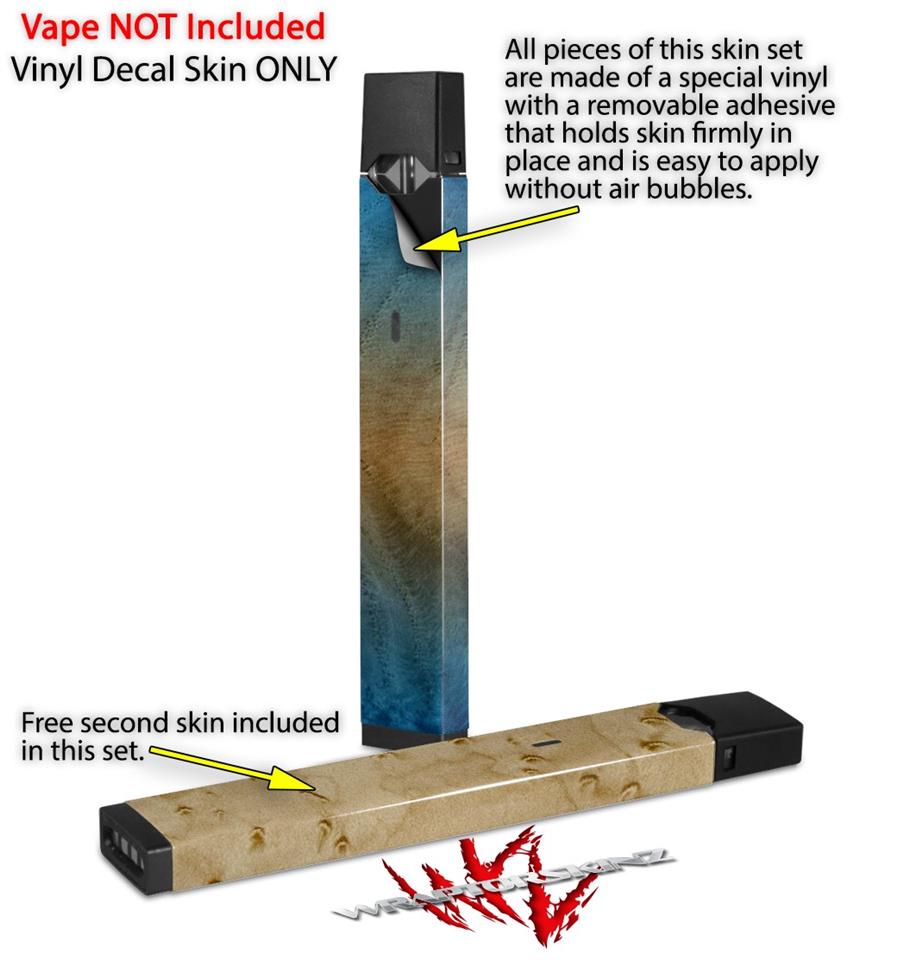 Skin Decal Wrap 2 Pack for Juul Vapes Exotic Wood White Oak Burl Burst Neon Blue JUUL NOT INCLUDED
