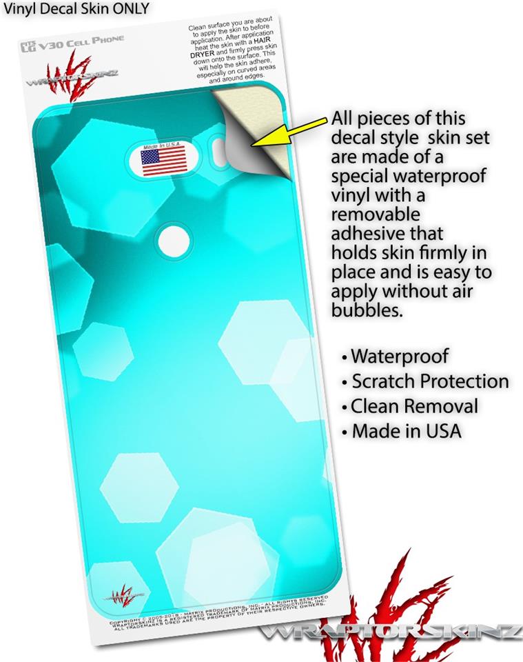 Skin Decal Wrap for LG V30 Bokeh Hex Neon Teal