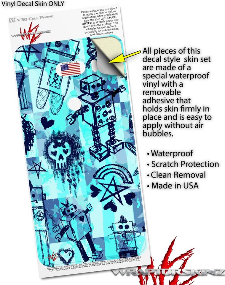 Skin Decal Wrap for LG V30 Scene Kid Sketches Blue