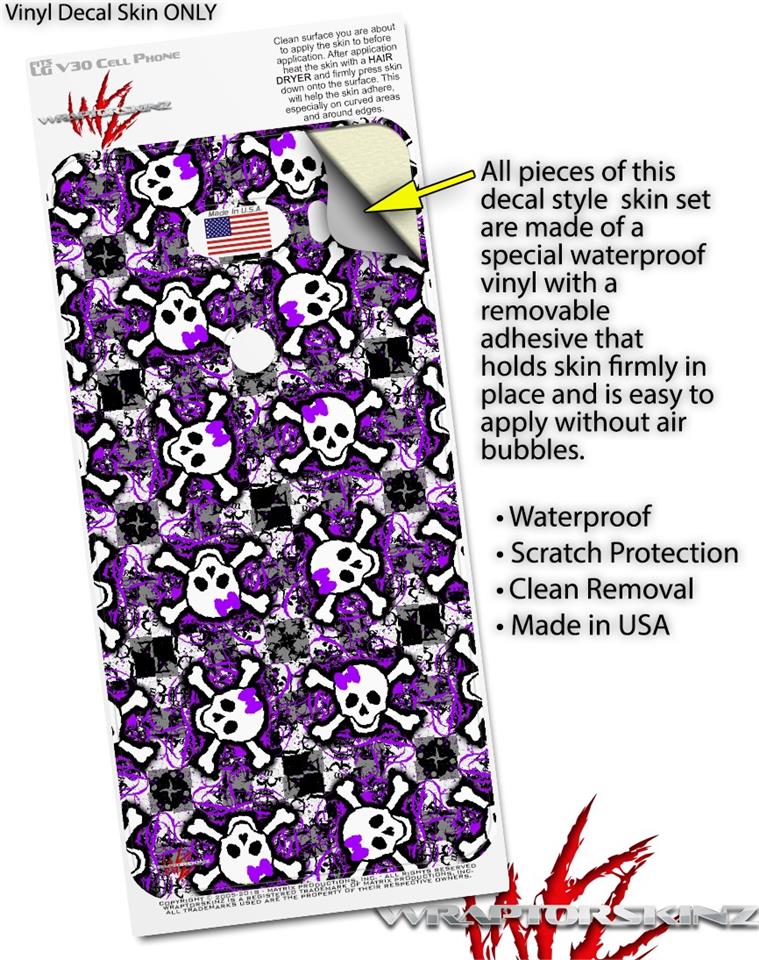 Skin Decal Wrap for LG V30 Splatter Girly Skull Purple