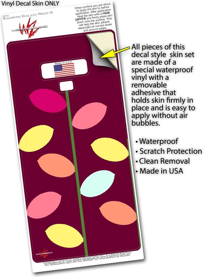 Decal style Skin Wrap compatible with Samsung Galaxy Note 9 Plain Leaves On Burgundy