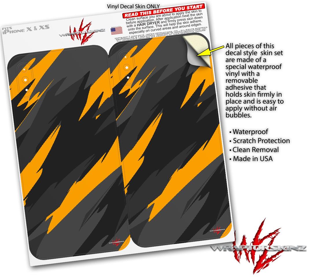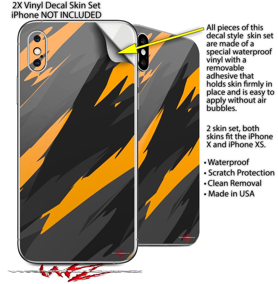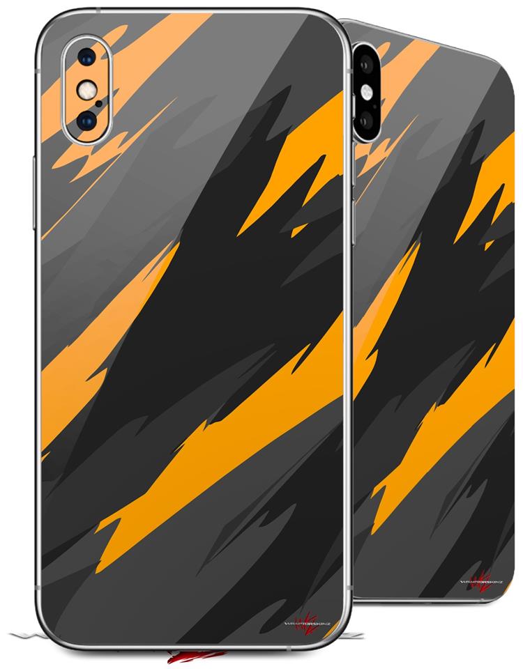 2 Decal style Skin Wraps set for Apple iPhone X and XS Jagged Camo Orange