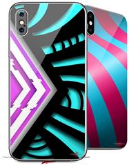 2 Decal style Skin Wraps set for Apple iPhone X and XS Black Waves Neon Teal Hot Pink