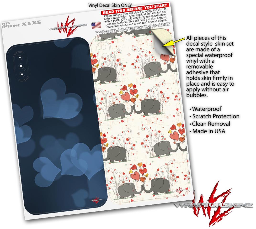 2 Decal style Skin Wraps set for Apple iPhone X and XS Bokeh Hearts Blue