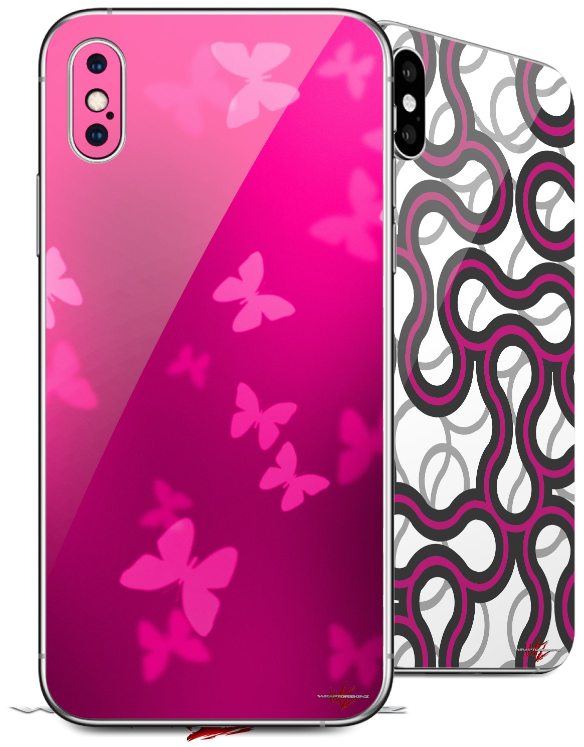 2 Decal style Skin Wraps set for Apple iPhone X and XS Bokeh Butterflies Hot Pink