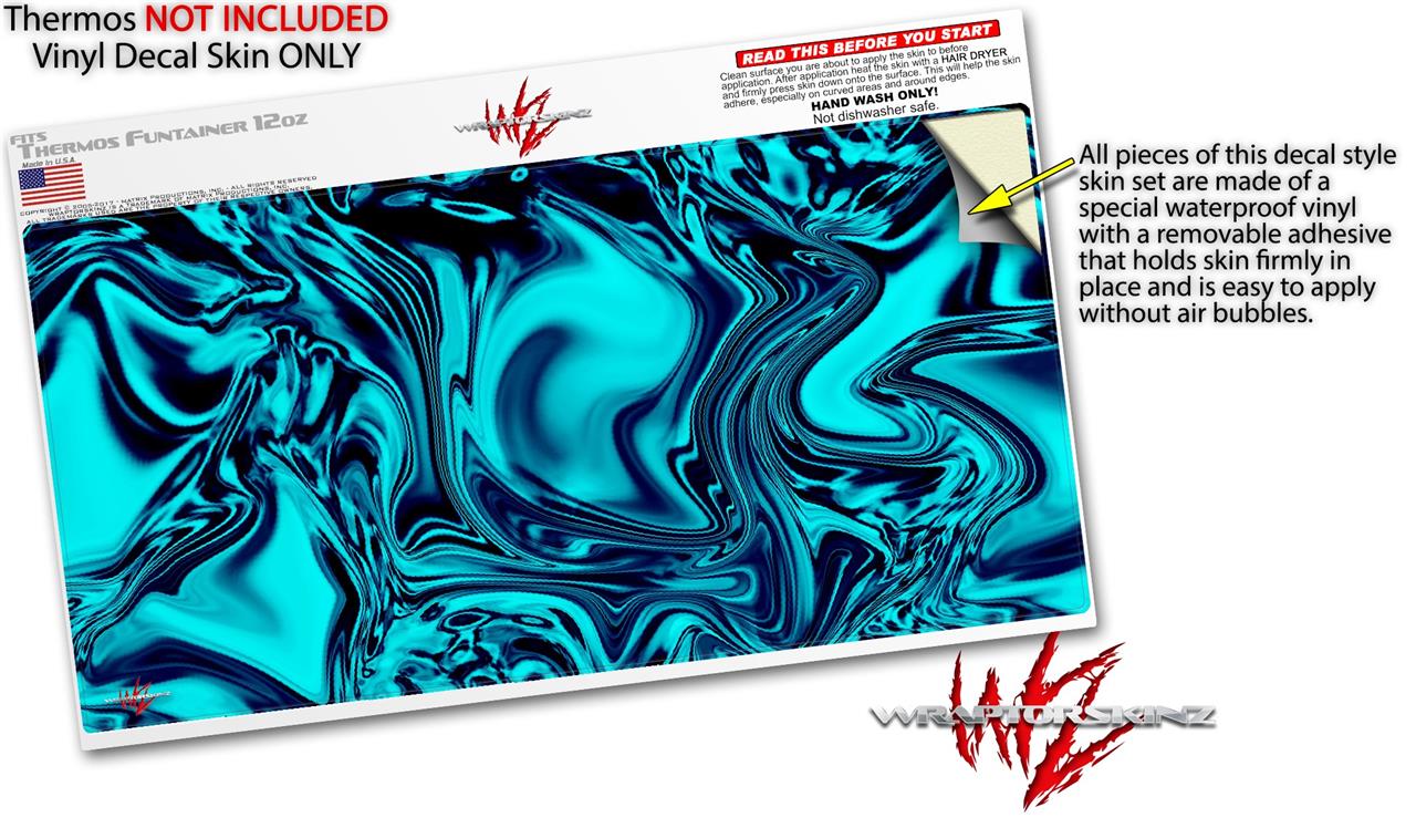 Skin Decal Wrap compatible with Thermos Funtainer 12oz Bottle Liquid Metal Chrome Neon Blue (BOTTLE NOT INCLUDED)