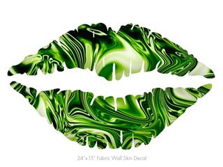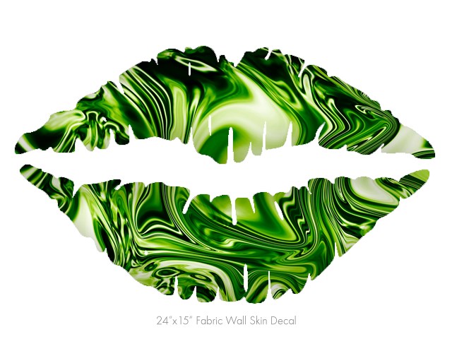 Liquid Metal Chrome Neon Green - Kissing Lips Fabric Wall Skin Decal measures 24x15 inches